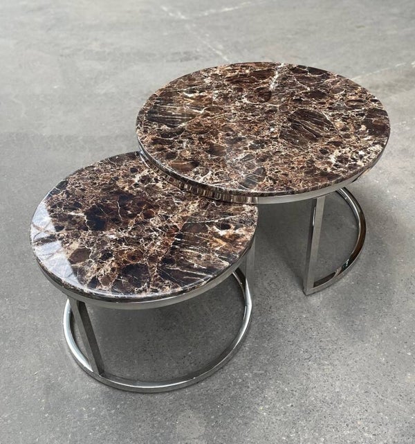 Luxe salontafel set Doblo met marmer blad. Blad is in bruin of creme kleur verkrijgbaar. metalen onderstel in zilver of goud.