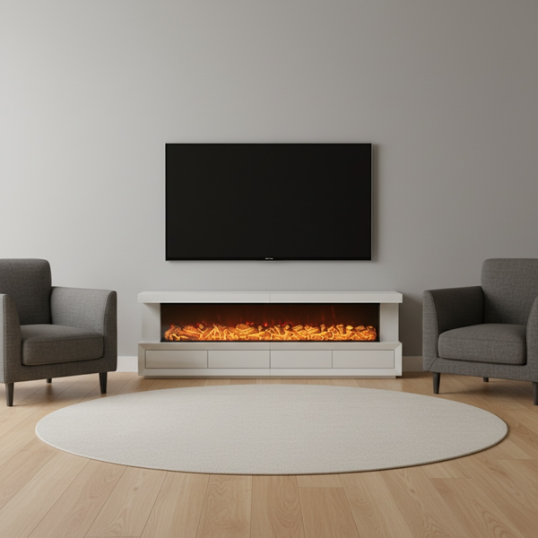 Het meubel is voorzien van een ingebouwde sfeerhaard, die een warme en gezellige ambiance creëert zonder gedoe.
