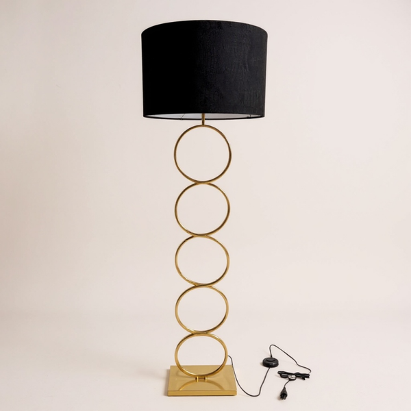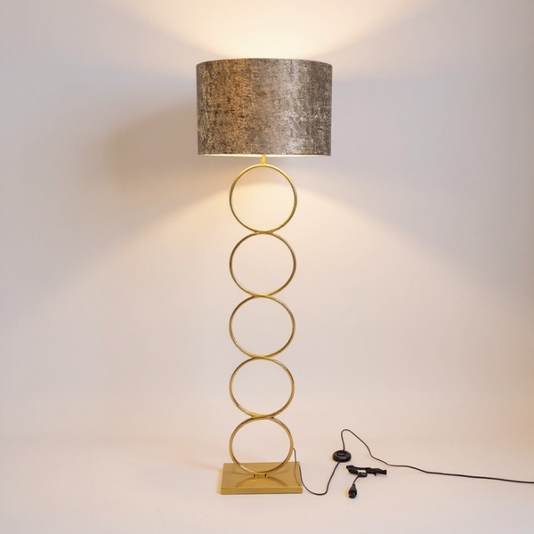 Breng stijl en luxe in je interieur met deze exclusieve staande lamp met 6 decoratieve ringen en een elegante croco kap. Met een hoogte van 170 cm en een stevige voet past deze vloerlamp perfect in de woonkamer, slaapkamer of hal. Verkrijgbaar met een mat zwarte voet of een mat gouden voet, gecombineerd met een zwarte of mocha kap zo kies je de perfecte match voor jouw interieur!