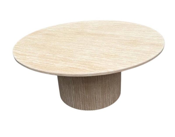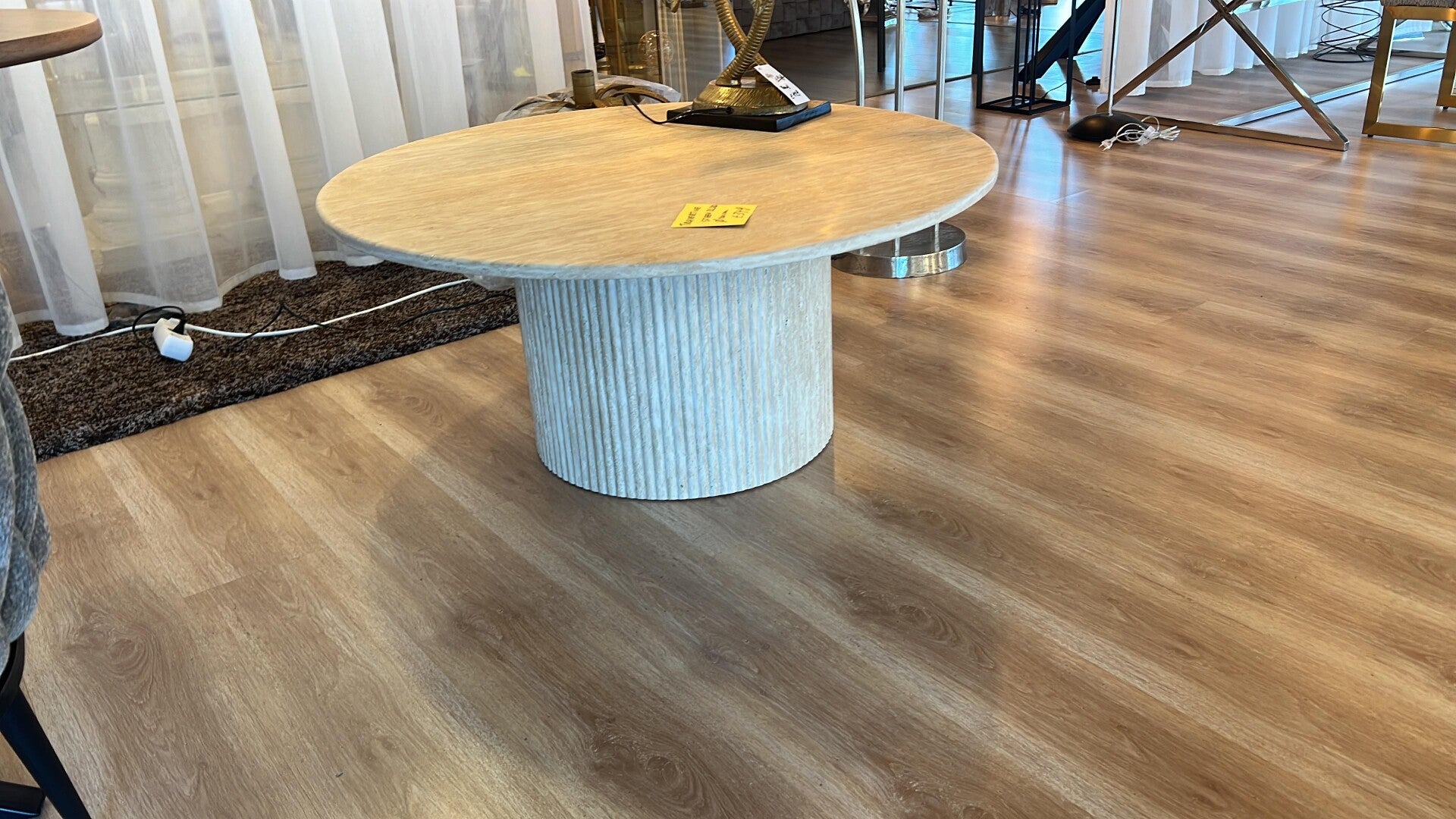 Het tafelblad van hoogwaardige materialen, met een unieke afwerking, straalt een warme en uitnodigende sfeer uit. De ronde vorm bevordert niet alleen interactie, maar maakt ook optimaal gebruik van de beschikbare ruimte, waardoor het ideaal is voor zowel kleinere als grotere woonkamers.