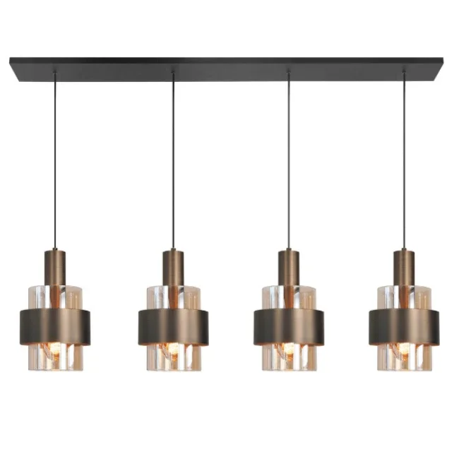 Hanglamp- Marrone- amber glas met bronzen elementen - 110cm lang
