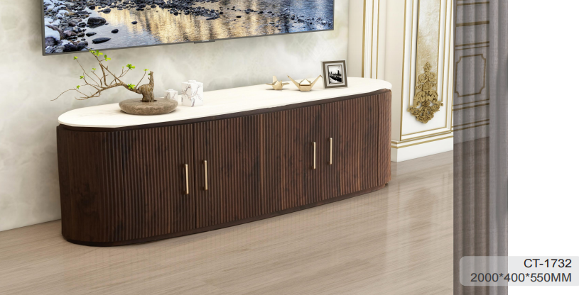 Het dressoir is voorzien van een prachtig travertine blad en een warm bruine kleurige kast, dat niet alleen een luxe uitstraling heeft, maar ook duurzaam is. Dit maakt het ideaal voor het presenteren van decoratieve items, het plaatsen van een mooie lamp of het stylen van je woonkamer met persoonlijke accenten.