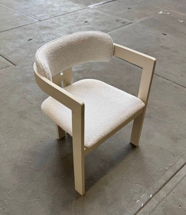 Met zijn minimalistische en verfijnde design past deze stoel naadloos in elke interieurstijl, van Scandinavisch tot modern en zelfs Japandi. Het lichte kleurenschema creëert een gevoel van ruimte en harmonie in je woonkamer, eetkamer of studiekamer.