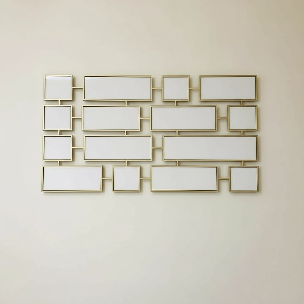 Geef je interieur een luxe en moderne uitstraling met de Wandspiegel Quadrados . Deze stijlvolle blikvanger met mat gouden randen bestaat uit een speels patroon van rechthoeken, waardoor hij een echte sfeermaker is in elke ruimte.