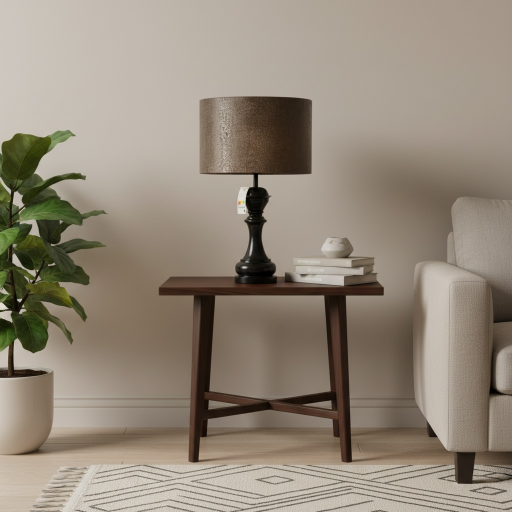 Queen Zwart Tafellamp – Luxe Mokka Velvet Kap (Goud Binnenzijde) – 63 cm Hoog – Ø38 cm – E27