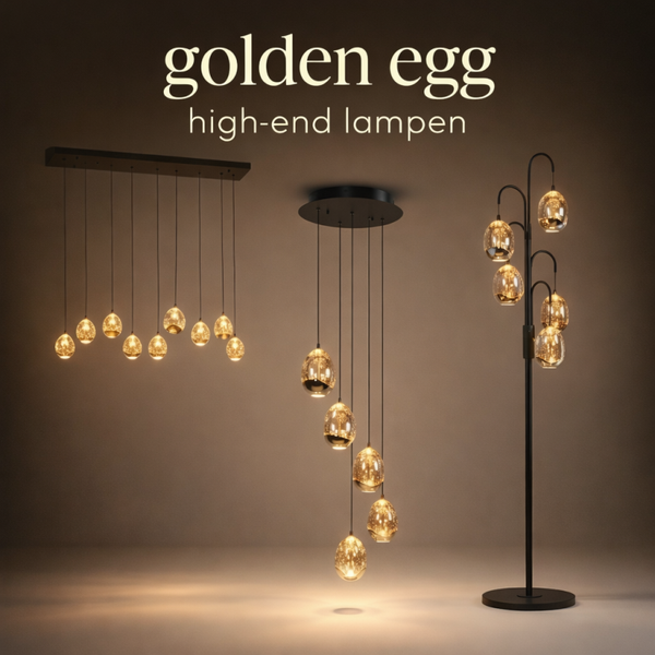 De Golden Egg is meer dan een staande lamp. Het is een luxe vloerlamp die sfeer en klasse toevoegt aan elk interieur. De unieke glazen kappen verspreiden het licht op een zachte, elegante manier en maken deze lamp perfect als sfeerverlichting in de woonkamer.