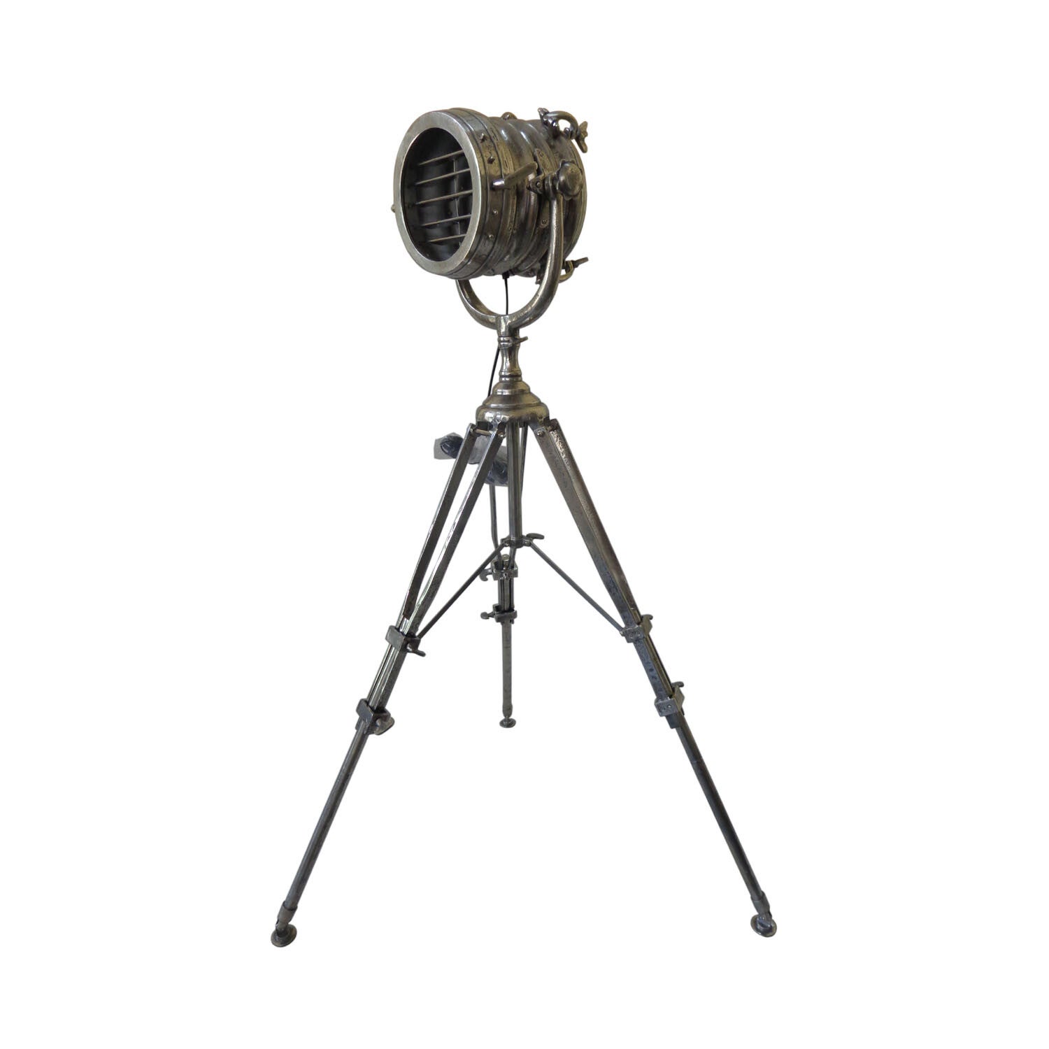 Stoere robuste staande lamp in ruw nikkel kleur.