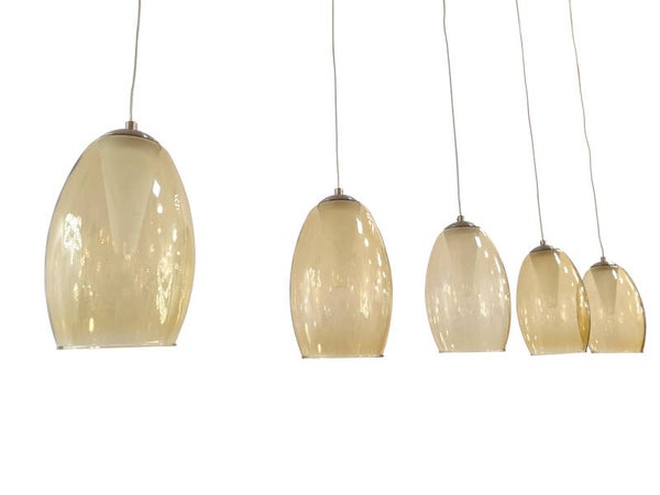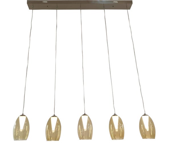 Led hanglamp Bell met amber glas en 5 x 5w geintegreerde led modulen.